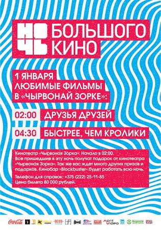 01 января 2014 в кинотеатре "Чырвоная Зорка" пройдет "Ночь большого кино", будут показаны фильмы: