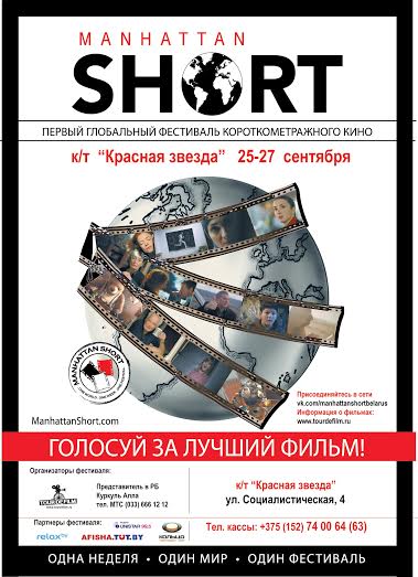 Самый масштабный фестиваль короткометражного киноTheManhattanShortFilmFestival снова в Беларуси! С 25 сентября по 4 октября 2015 года более 100 тысяч зрителей по всему миру отправятся в кинотеатры, чтобы выбрать лучший короткометражный фильм планеты на Манхэттенском фестивале короткометражного кино 2015 (Нью-Йорк, США). На 6 континентах, в 250 городах мира, фестиваль уже 14 лет объединяет зрителей разных поколений для выбора лучшего фильма под ярким слоганом «Одна неделя. Один мир. Один фестиваль»