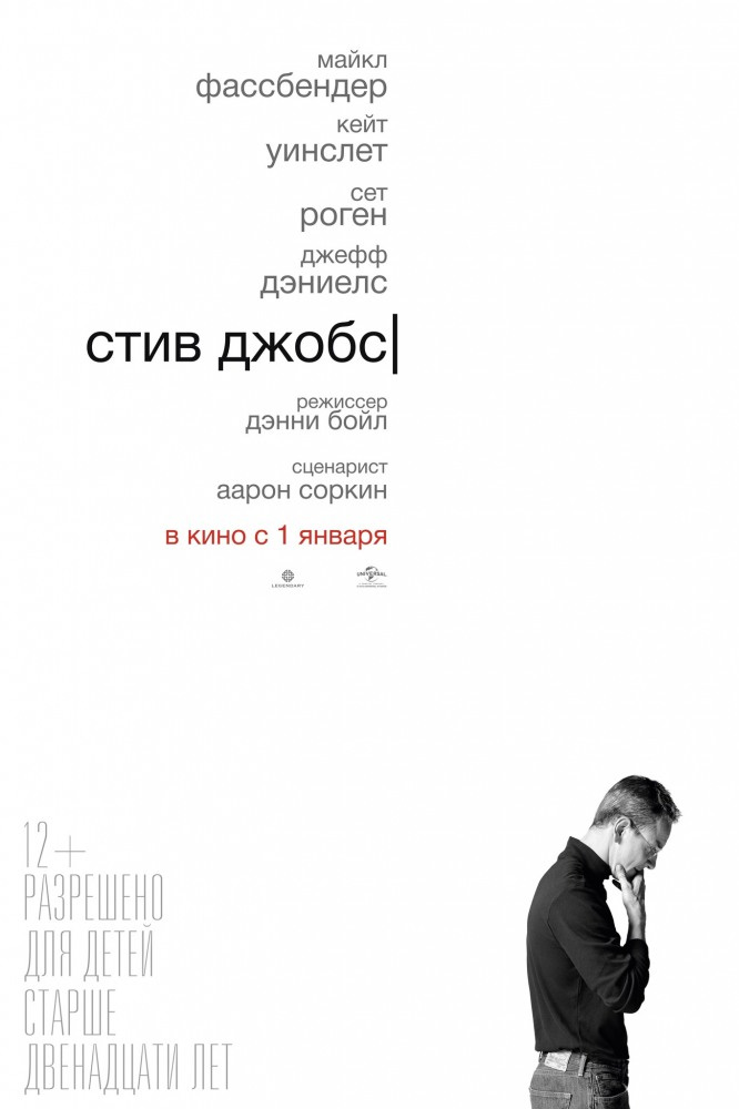 В ролях: Майкл Фассбендер, Сет Роген, Джефф Дэниелс, Кейт Уинслет, Майкл Стулбарг, Кэтрин Уотерстон, Перла Аней-Жардине, Сара Снук