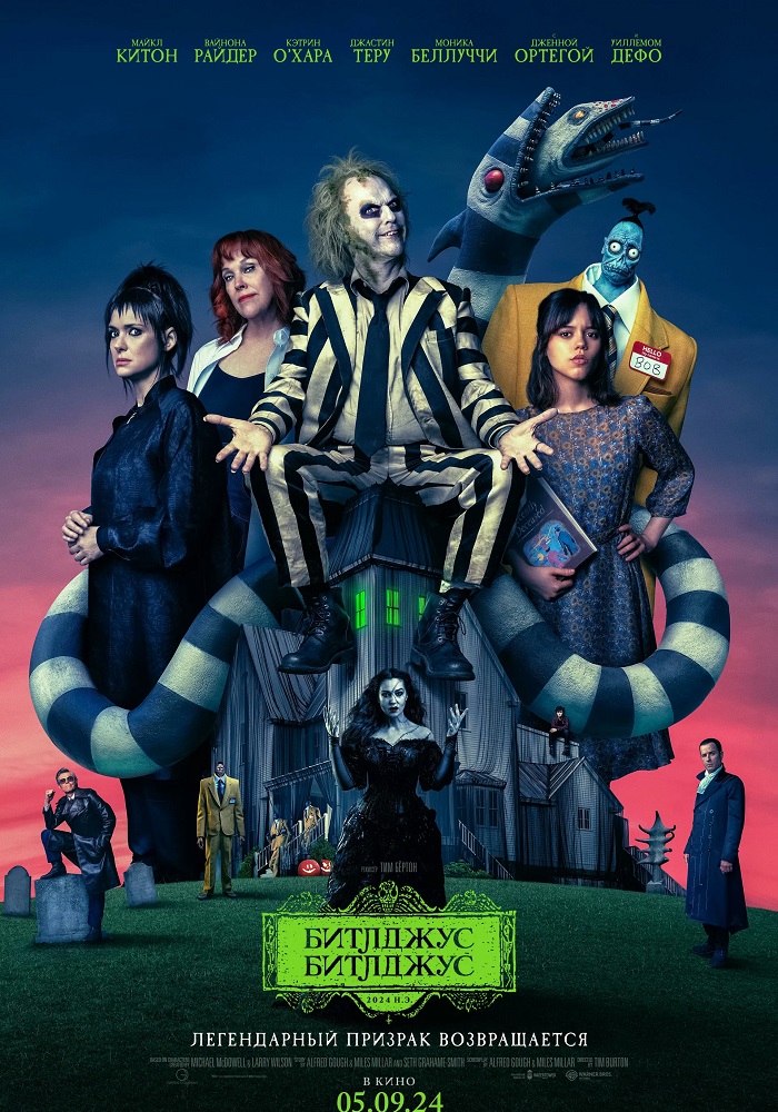 В ролях: Майкл Китон, Вайнона Райдер, Кэтрин О Хара, Дженна Ортега, Джастин Теру, Уиллем Дефо, Моника Беллуччи, Arthur Conti, Ник Келлингтон, Сантьяго Кабрера