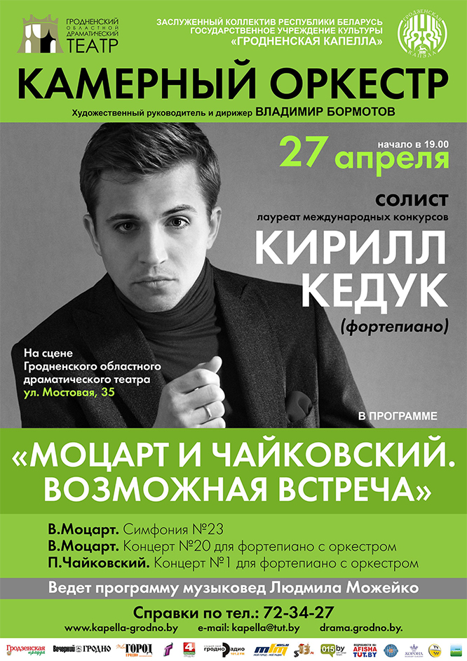 Участники: Камерный оркестр Заслуженного коллектива Республики Беларусь «Гродненская капелла», Лауреат международных конкурсов Кирилл Кедук