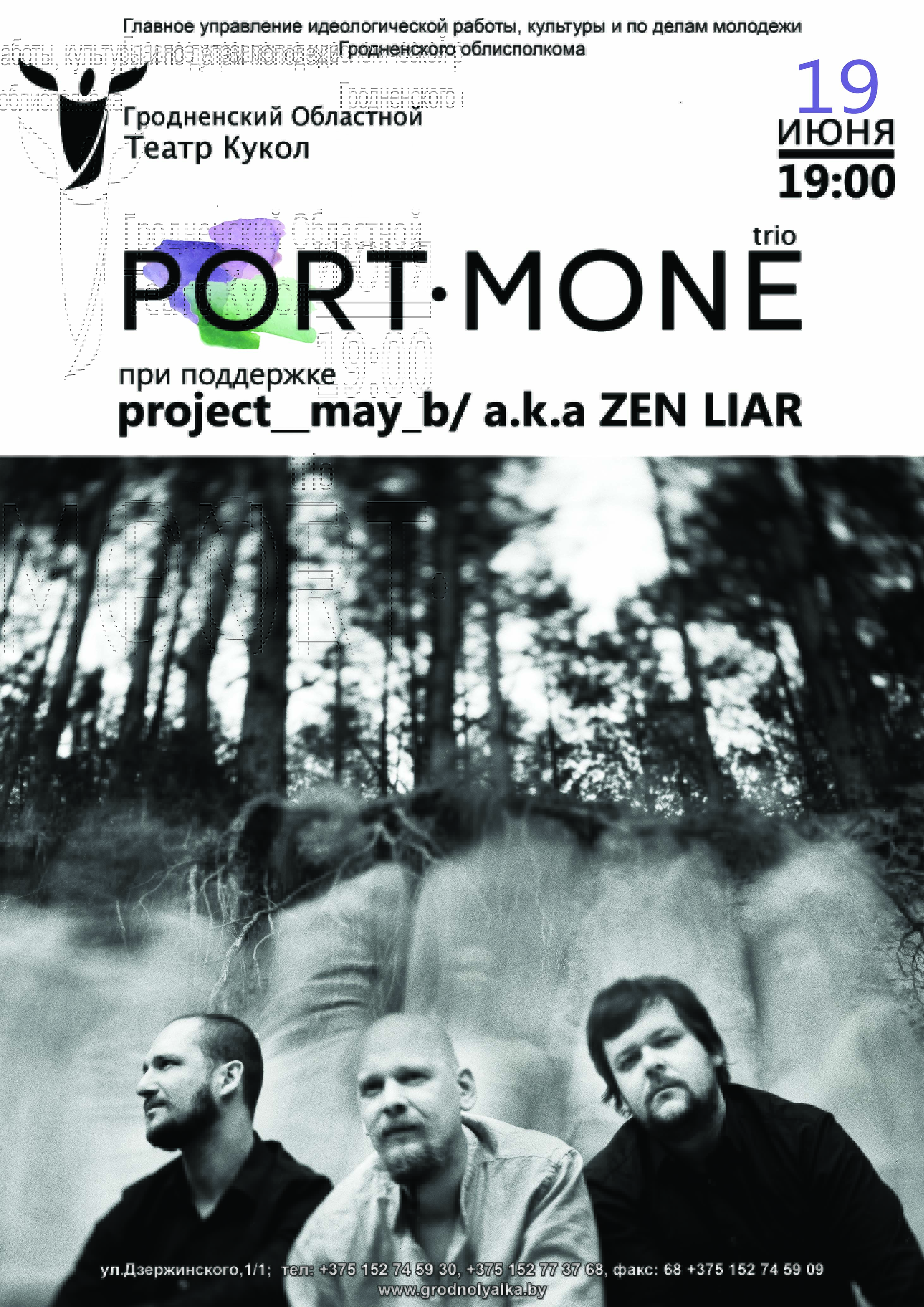 Концерт инструментального трио Port Mone, г. Минск. Музыкальный язык коллектива использует выразительные средства различных музыкальных традиций, среди которых академическая музыка, минимализм, нойз, фольк, экспериментальная электронная музыка.