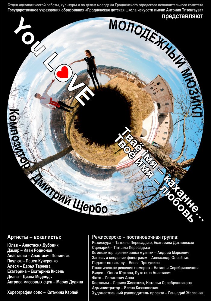 Молодёжный мюзикл «Твоё имя – любовь» состоит их  самостоятельных вокально-эстрадных произведений, впитавших в себя стилистику и красоту белорусской народной песни и аранжированных в современных стилях.