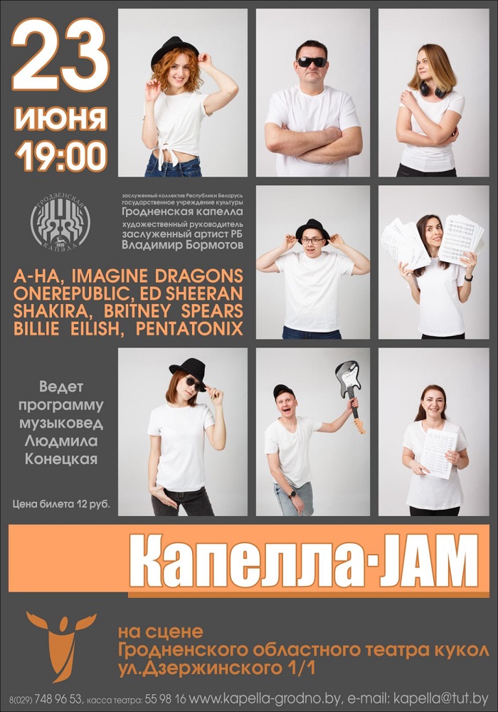 Концерт вокального ансамбля «КАПЕЛЛА – JAM», самые чистые и молодые голоса капеллы с программой песен из репертуара A-hA,Shakira,Billie Eilish,Britney Spears, Pentatonix,Ed Sheeran,One Republic,Ima...