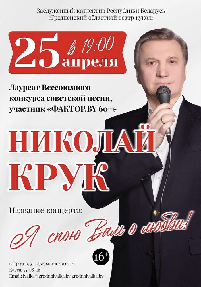 Лауреат Всесоюзного конкурса советской песни, участник «ФАКТОР.BY» (16+) –  Николай Крук исполнит известные и любимые хиты разных лет.