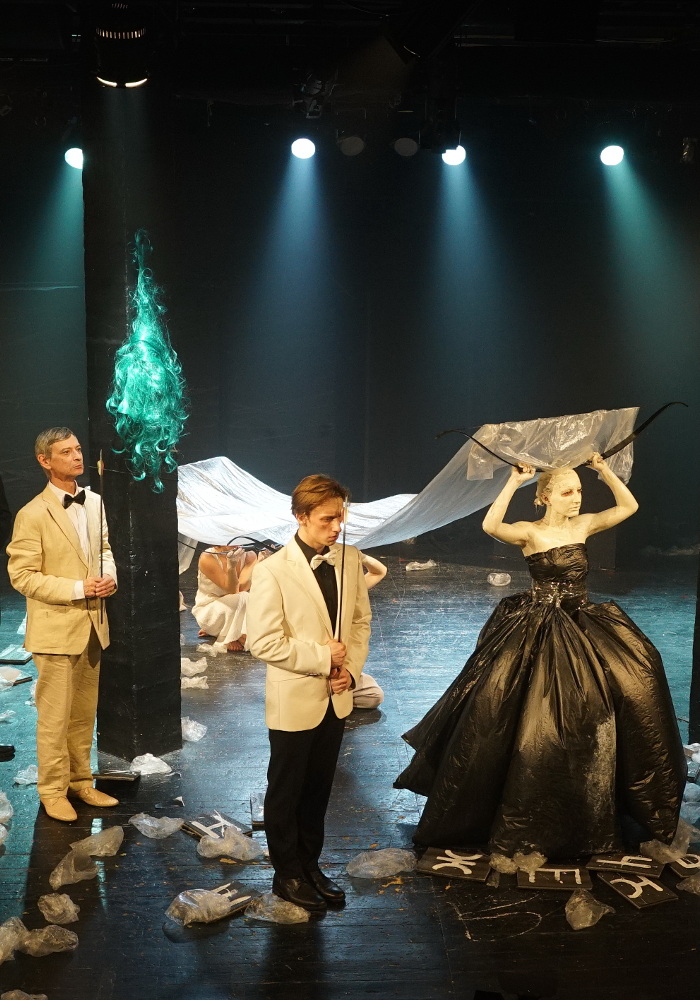 На языке современного визуального театра, в котором радикальным образом перемешаны экспрессивная актерская пластика, свет, электронная музыка и сценография в духе арт-брю театр «Суббота» играет классический шекспировский текст.