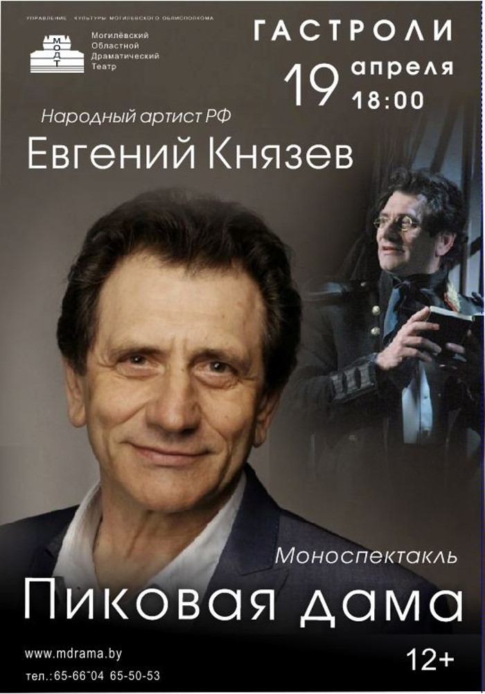 Артист представит могилевчанам свою трактовку пушкинского сюжета, которую увидели и полюбили зрители многих городов. Высочайшее мастерство и яркий талант Евге...
