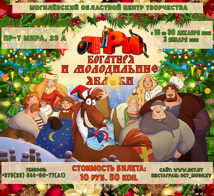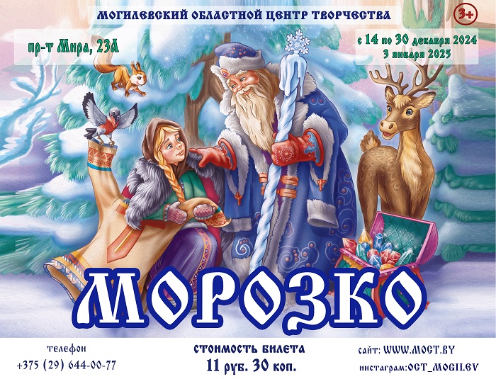 К-р Красная звезда (Гродно) Молодежный центр (Гродно) Ансамбль Белые росы (Гродно) Гродненская областная филармония Драматический театр (Гродно) Большой зал 10:05 Прячась в библиотеке от вредных одноклассников, Лиза находит «Настольную книгу супергероя» и узнаёт, как развить в себе суперспособности. Девочка начинает тренироваться, учится лет Большой зал 12:00 Кузя продолжает жить с Наташей и её семьёй. Баба Яга окончательно перебралась в мир людей и старается быть полезной, став неожиданной помощницей для окружающих. Всё кажется спокойн Большой зал 14:00 17:50 Жизнь Золушки у мачехи непроста, но она не унывает, ведь у неё есть верный друг по имени Северин. Будучи простым дровосеком, он мечтает прославиться, но однажды находит волшебное д Большой зал 15:45 Человек-пума Караг продолжает обучение в секретной академии для подростков-оборотней и тоскует по семье. Неожиданно Эндрю Миллинг, главный противник Карага и его бывший наставник, Большой зал 19:30 После победы над Боузером и спасения Бруклина Марио сталкивается со злобным альянсом Варио и Боузера-младшего. Теперь вместе со своими друзьями и Йоши он должен помешать их планам Большой зал 21:20 Благородный и всеми любимый полицейский Рамаш, благодаря которому в городе Хурмада царит мир и порядок, вступает в борьбу с хитрыми алчным бандитом Шамаром. Воспитанный приемными р VIP Зал 11:00 После победы над Боузером и спасения Бруклина Марио сталкивается со злобным альянсом Варио и Боузера-младшего. Теперь вместе со своими друзьями и Йоши он должен помешать их планам VIP Зал 13:00 Жизнь Золушки у мачехи непроста, но она не унывает, ведь у неё есть верный друг по имени Северин. Будучи простым дровосеком, он мечтает прославиться, но однажды находит волшебное д VIP Зал 14:40 Человек-пума Караг продолжает обучение в секретной академии для подростков-оборотней и тоскует по семье. Неожиданно Эндрю Миллинг, главный противник Карага и его бывший наставник, VIP Зал 16:45 21:20 Старшеклассница Полина спасается от травли в новой школе и идёт на сделку с главным хулиганом Барсом: он должен притворяться её парнем и защищать, а она делать всё, что он скажет. VIP Зал 19:25 Неуловимый хейтер под маской анонимности ведет разрушительную игру. Его провокации постепенно втягивают в конфликт самых разных людей — от публичных фигур до обычных пользователей. Кинозал 13:20 Прячась в библиотеке от вредных одноклассников, Лиза находит «Настольную книгу супергероя» и узнаёт, как развить в себе суперспособности. Девочка начинает тренироваться, учится лет Кинозал 15:20 23:10 Благородный и всеми любимый полицейский Рамаш, благодаря которому в городе Хурмада царит мир и порядок, вступает в борьбу с хитрыми алчным бандитом Шамаром. Воспитанный приемными р Кинозал 17:40 Жизнь Золушки у мачехи непроста, но она не унывает, ведь у неё есть верный друг по имени Северин. Будучи простым дровосеком, он мечтает прославиться, но однажды находит волшебное д Кинозал 19:30 После победы над Боузером и спасения Бруклина Марио сталкивается со злобным альянсом Варио и Боузера-младшего. Теперь вместе со своими друзьями и Йоши он должен помешать их планам Кинозал 21:20 Чарли и Эмма влюблены друг в друга и вот-вот поженятся. Место свадьбы выбрано, приглашения разосланы, до долгожданной церемонии остаются считанные дни. Но одно, казалось бы, невинн Малый зал 09:30 1960 год. В городке у 