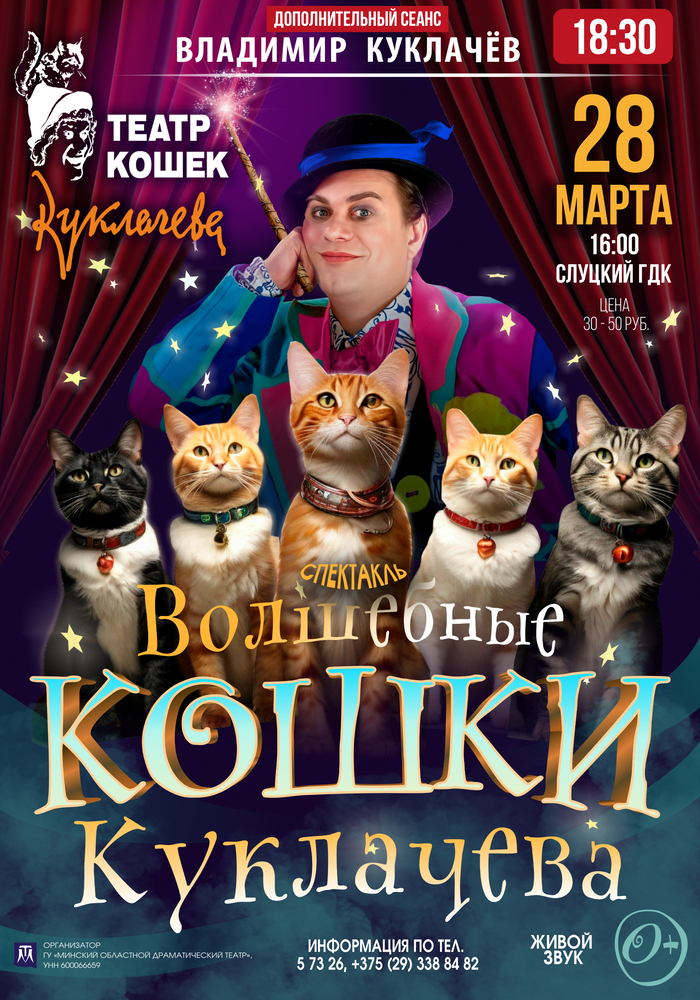 Слуцкий городской Дом культуры / Спектакль «Волшебные кошки» зарубежного коллектива Театра Кошек Куклачева (г. Москва, Российская Федерация) - 510 0