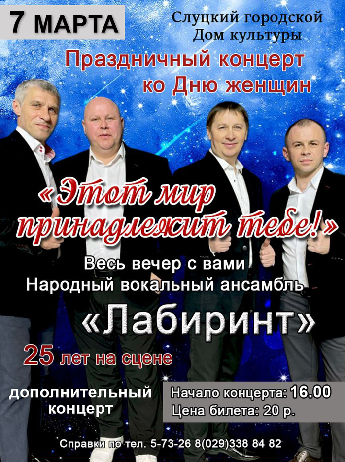 Слуцкий городской Дом культуры / Праздничный концерт ко Дню женщин «Этот мир принадлежит тебе!» (дополнительный концерт) - 33 0